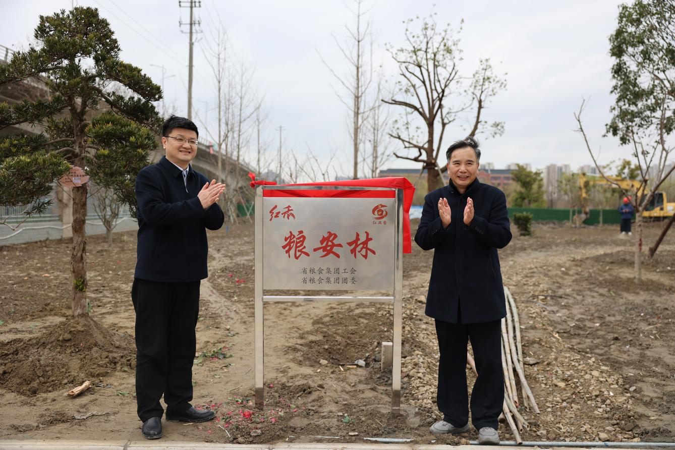 活动伊始,集团党委委员、副总经理黄熙荣激情号召大家“以春为号、向绿而行”,“红禾”志愿者们热情高涨、分工明确、默契配合、齐心协力。挥锹挖坑、扶苗填土、浇水灌溉,各个环节衔接有序,忙而不乱,现场一片热火朝天的劳动景象。活动中大家在每棵树上悬挂定制认养牌,记录了种植者的姓名。在大家的共同努力下,“粮安林”崭新落成,一棵棵的树苗昂然挺立,在和煦的春风中焕发出勃勃生机。