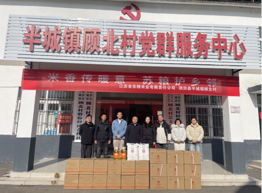 新春将至,年味渐浓。为深入贯彻落实乡村振兴战略部署,切实履行国有企业社会责任,把温暖与关怀送到群众身边,1月28日,苏粮米业慰问组一行在华厦党总支领导班子带领下,专程前往泗洪县半城镇顾北村,开展春节前慰问活动,为当地困难群众送去大米、食用油等生活物资,并看望公司驻村第一书记,以实际行动书写国企担当,为乡村振兴注入温暖力量。