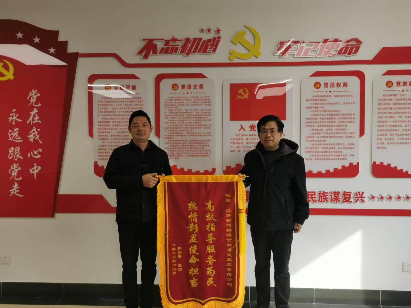 近日,通州库、如皋库迎来暖心一幕,前来赠送锦旗的客户罗园喜,将印着“高效指导服务为民 热情彰显使命担当”“储备安全民生无忧 高效服务情系万家”的锦旗,诚挚交到通州库、如皋库。这抹亮眼的红色,不仅是对两库秋粮收购工作的高度肯定,更是南通区域各直属库践行国企为民服务宗旨的生动见证。