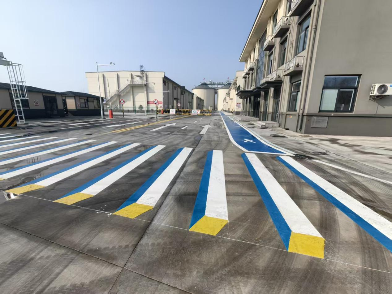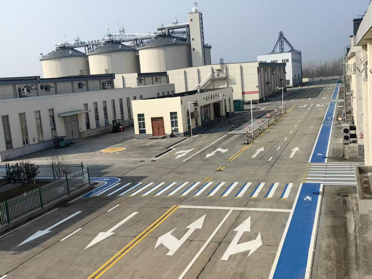 此次地面划线升级聚焦仓储作业实际需求,以“安全优先、规范有序、实用高效”为原则,对库区主干道、粮食运输通道、装卸作业区、机械设备区等关键区域进行系统性规划。库区采用耐磨、防滑、反光性强的专业标线材料,精准划定行车道、人行道分隔线、停车泊位线、安全警示线及各类功能区域标识线,明确区分作业区域与非作业区域,实现“分区清晰、动线合理、标识醒目”的改造目标。