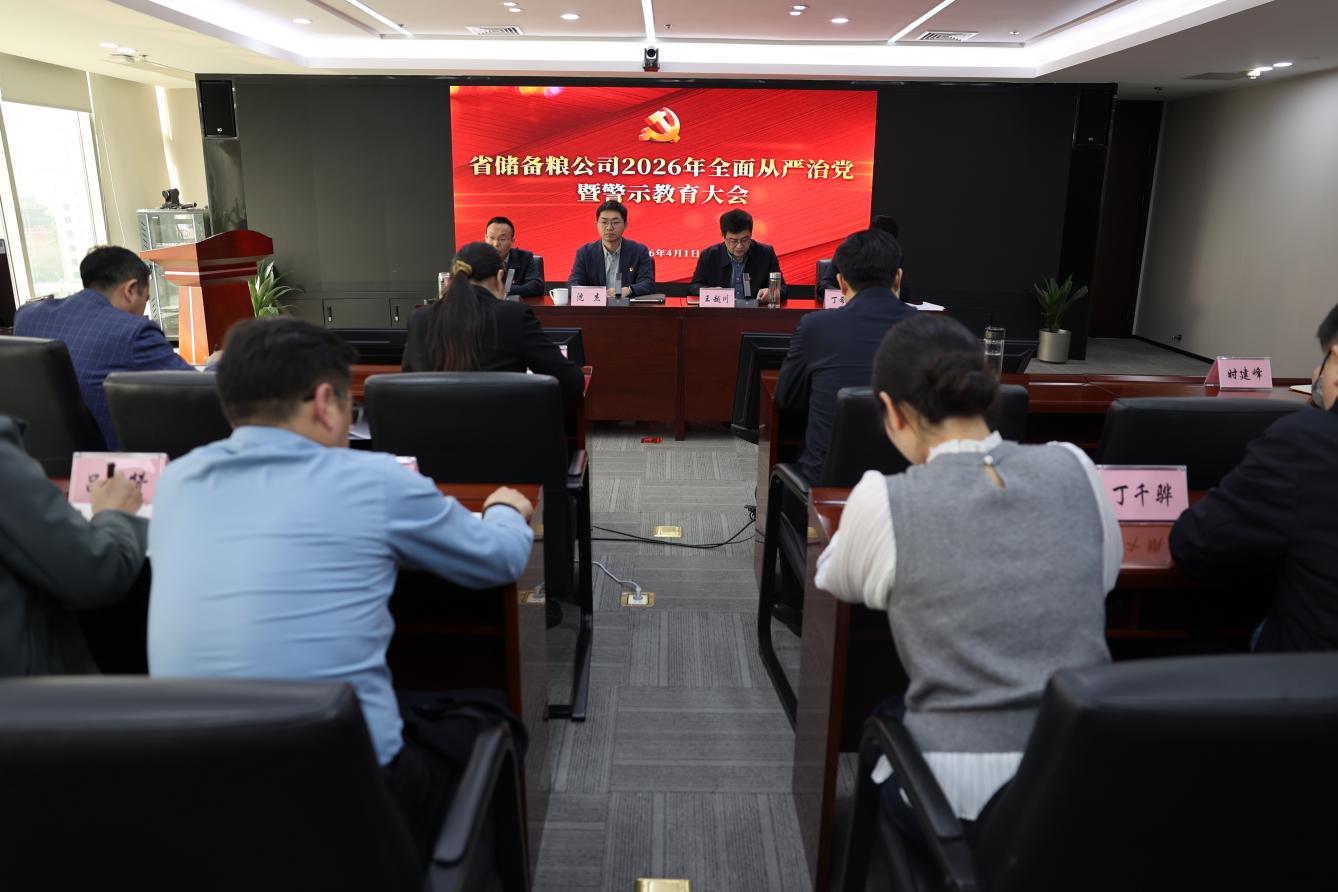 4月1日,省储备粮公司党委召开2026年全面从严治党暨警示教育大会,总结2025年全面从严治党工作,分析问题形势,部署2026年工作任务,并开展警示教育。省储备粮公司党委书记、董事长沈杰出席会议并作全面从严治党工作报告,党委副书记王越川主持会议,纪委书记徐俊作纪委工作报告。