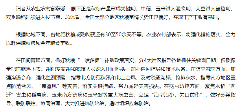 农业农村部部署加强田间管理等,多措并举保障秋粮丰收