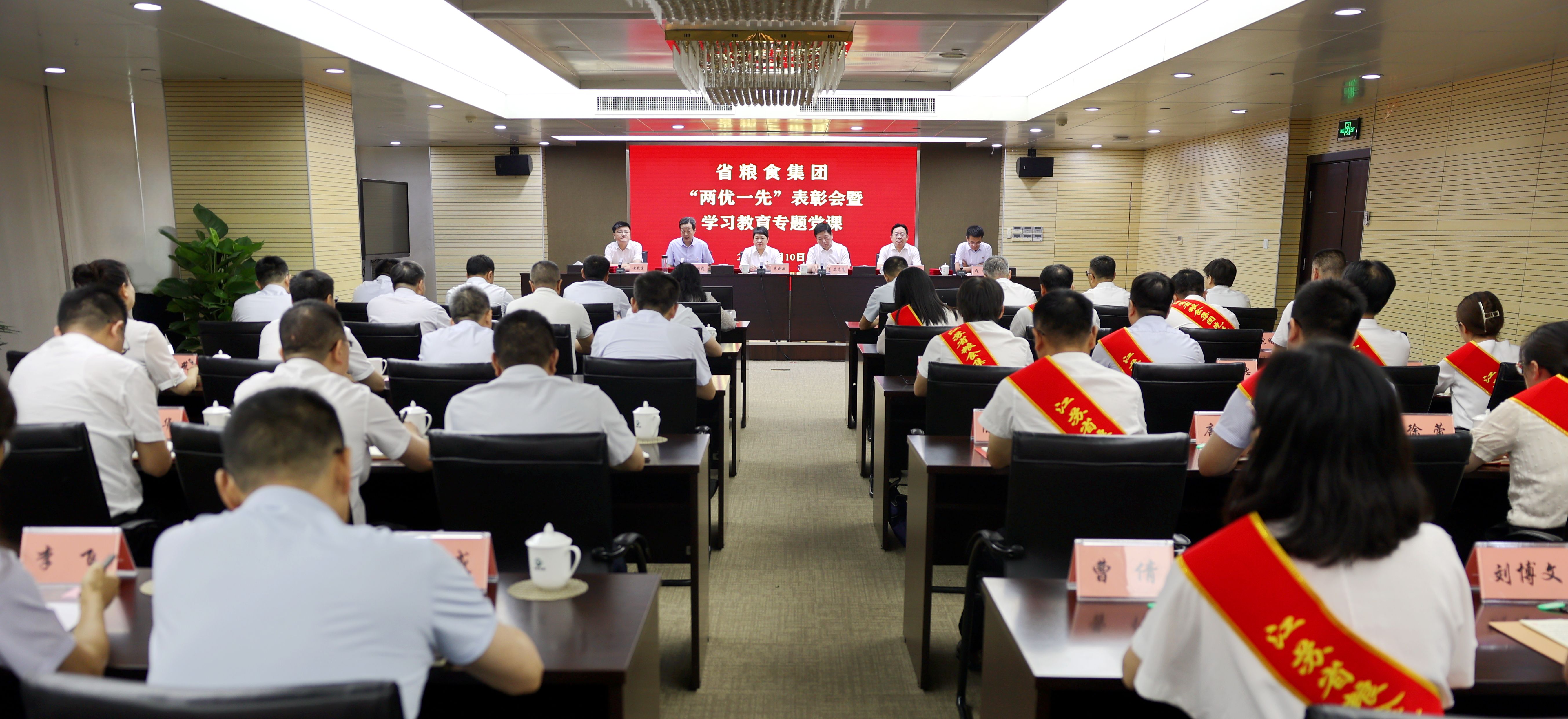 7月10日,苏粮集团召开“两优一先”表彰会暨学习教育专题党课。集团党委书记、董事长单晓敏讲授学习教育专题党课,集团总经理、党委副书记苏志富及党委其他领导班子成员参加会议。
